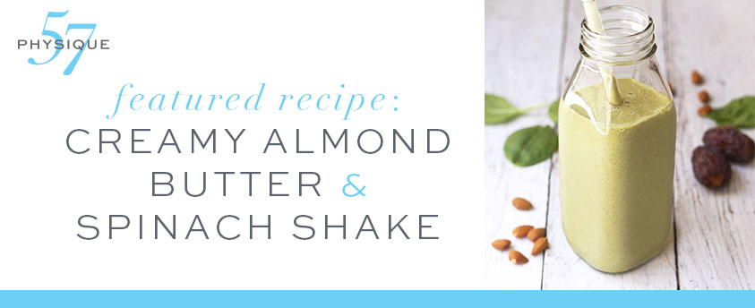 This week, we’re giving you a sneak peek of one of our favorite recipes from the meal plan: Creamy Almond Butter & Spinach Shake. This shake is jam packed with all of our favorite ingredients from almond butter to dates. Get the recipe below.