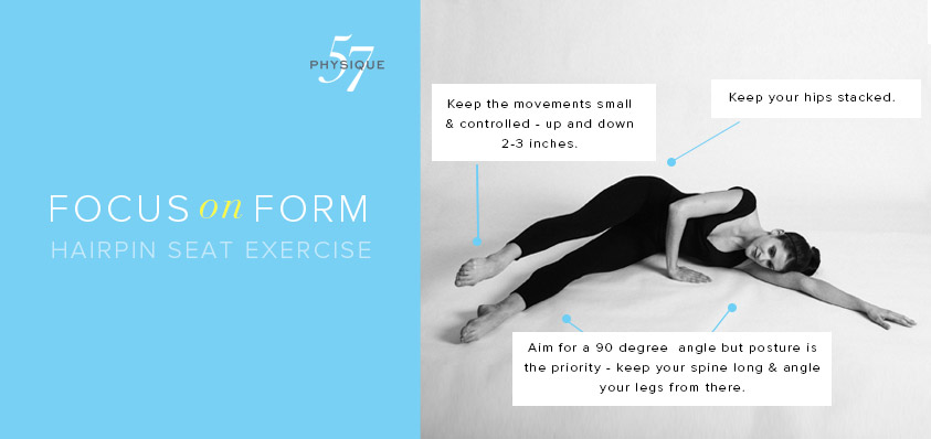 This one’s exactly like the name: A hairpin keeps your hair in place, and this move keeps your seat muscles in place — no bulging, jiggling, or unattractive spread when you sit down. Go for the lifted butt and perky style! We’ll take a closer look at the hairpin seat exercise to explain the positioning and give you essential alignment tips.