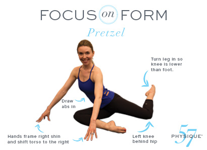 The Pretzel is a Physique 57 favorite, with good reason! This exercise is the ultimate multitasking move, simultaneously helping you lift your seat, trim your thighs and carve out a tinier waistline.