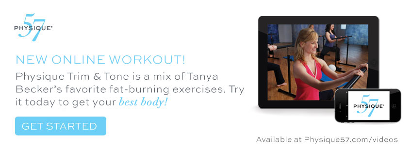 NEW online workout! Physique Trim & Tone is a mix of Tanya Becker’s favorite fat-burning exercises from the Physique 57 DVD series. This exclusive video from our best-selling fitness & diet paperback book, The Physique 57 Solution, is now available online!