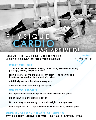 We’re excited to announce our new class, Physique Cardio! Sign up here for your first Physique Cardio class.