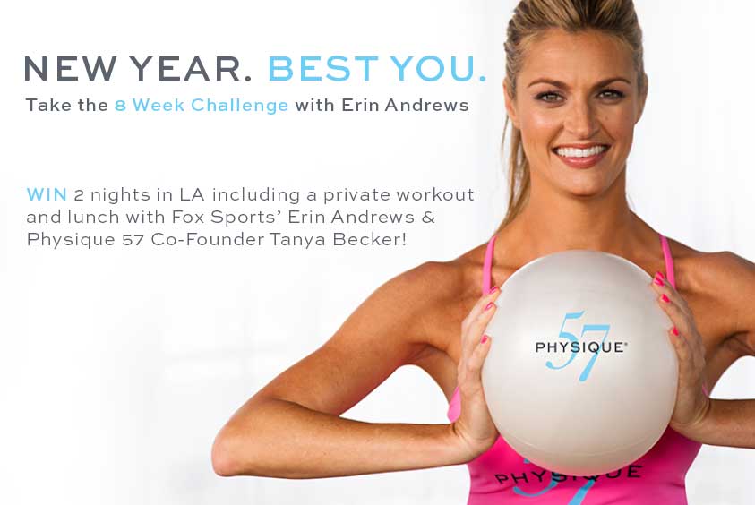 When you sign up you will automatically be entered to WIN* a 2 night stay in LA as well as a private workout & lunch with Fox Sports’ Erin Andrews & Physique 57 Co-Founder Tanya Becker in Beverly Hills.